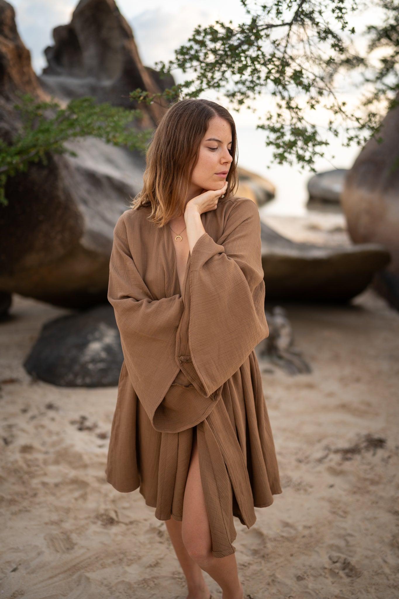 All our fabrics are made from natural fibers. Even the buttons are made from natural materials like wood and coconut. Many styles are undyed and unbleached, which is the most resource-efficient option. The dyeing is as natural and environmentally friendly as possible. Experience clothing in its most natural form and immerse yourself in a whole new, lighter lifestyle.
